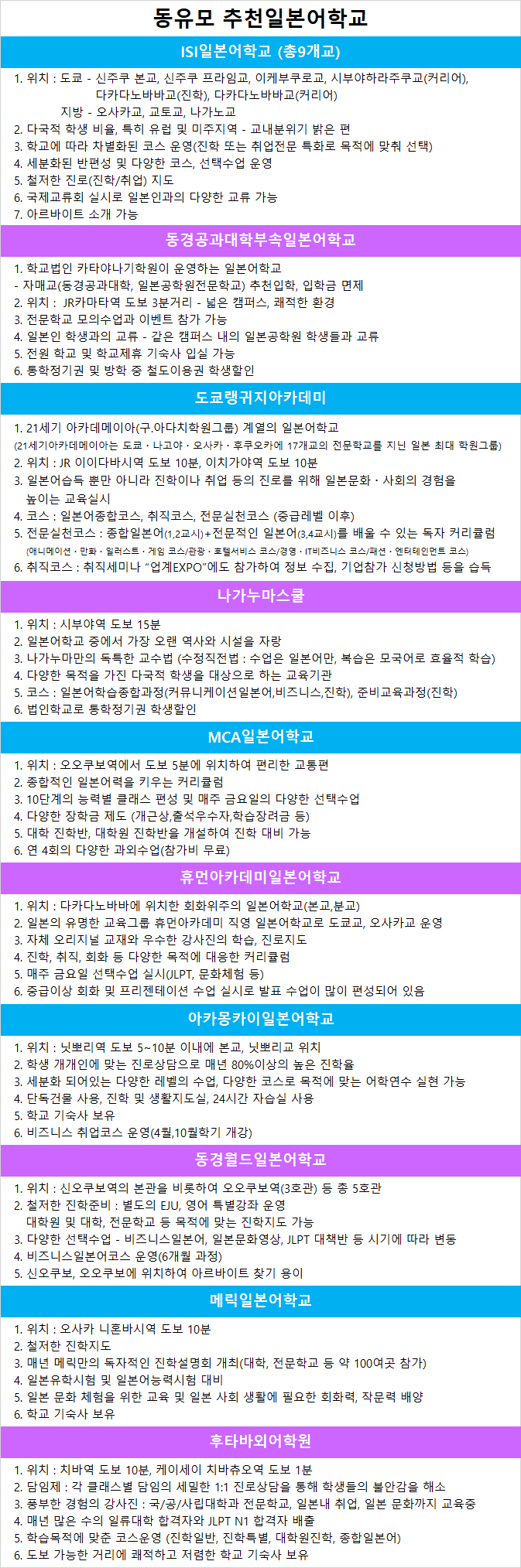 소개해 드리는 학교 외에도 본인의 일본유학 목적에 따라 추천해드리는 학교는