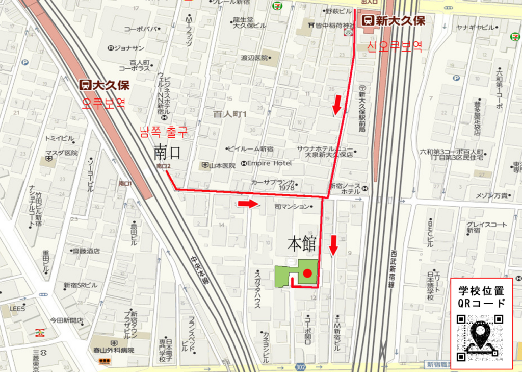 일본어 학교 언어 학습을 위한 알맞은몰입 환경을 제안드립니다. 동경월드 일본어학교 東京ワールド日本語学校 설립연도 1985년 학교주소 제1교사 (본관) 東京都新宿区百人町1-13-24 JR 신오쿠보역 출구에서 도보 3분 JR 오쿠보역 남쪽 출구에서 도보 3분 세이부신주쿠역 북쪽 출구에서 도보 5분 제2교사 東京都新宿区百人町1-22-12 JR 오쿠보역 남쪽 출구에서 도보 2분 JR 신오쿠보역 출구에서 도보 6분 제3교사 東京都新宿区北新宿1-8-15 JR 오쿠보역 남쪽 출구에서 도보 1분 (역 바로 인근) 입학시기 1월, 4월, 7월, 10월 입학전형 만18세 이상 고등학교 졸업 홈페이지 https://twla.jp/ 상담하기 학교소개 1.교통이 편리한 신주쿠 오오쿠보역에서 도보6분이며 6층 단독 건물 사용2.철저한 진학 지도로 매년 와세다, 게이오 등 우수한 대학 진학(방과후 영어,수학, 물리 등 수업)3.일본유학시험대비 (월-영어,화-수학,금-종합과목)중급이상자만 해당4.일본어교사양성코스(4월,10월 개강)5.매주 목요일 무료 회화수업실시 (수업시간 1시~2시/5시~6시)6.JLPT대비와 중급이상 선택수업가능 (비지니스회화,진학수업 등)7.기업견학,특별강좌를 통한 일본취업에 유리함8.아르바이트 알선 적극 협조(신문장학생아르바이트/IT분야취업)9.한국담당자가 있어 일본생활 및 문화적응지도 및 아르바이트 소개 입학정보 모집 시기: 1월, 4월, 7월, 10월주요 코스 : 대학/대학원 진학 / 비즈니스 일본어 / 일본문화 커뮤니케이션 / 영상 코스수업 시간 : 오전반(09:00~12:30) / 오후반(13:30~17:00)특별 수업 : EJU 대책(영어, 수학, 종합과목), JLPT 대책반 운영학생 혜택 : 학교법인으로 통학 정기권(교통비 할인) 및 100km 이상의 여행 시 학생 할인 학과/학비 항목장기 코스 (1년 기준)단기 코스 (3개월)선고료 (전형료)20,000엔–입학금65,000엔10,000엔1회차 납입액481,000엔207,500엔※ 장기 코스 1회차 납입액은 입학금, 수업료(일부), 시설비 등이 포함된 금액입니다. 코스 구분 수업료 (연간) 시설비 (연간) 합계 총액 진학 / 일반 장기 (1년) 750,000엔 42,000엔 877,000엔 단기 일본어 (3개월) 187,500엔 10,000엔 207,500엔 비즈니스 클래스 (3개월) 212,500엔 10,000엔 232,500엔 장기 코스 합계에는 선고료와 입학금이 모두 포함되어 있습니다. 상기 비용에는 학교 행사비 및 교과서 대금이 포함되어 있습니다. EJU 특별 수업(영어, 수학 등) 수강 시 학기당 10,800엔~21,600엔의 추가 비용이 발생 학교위치